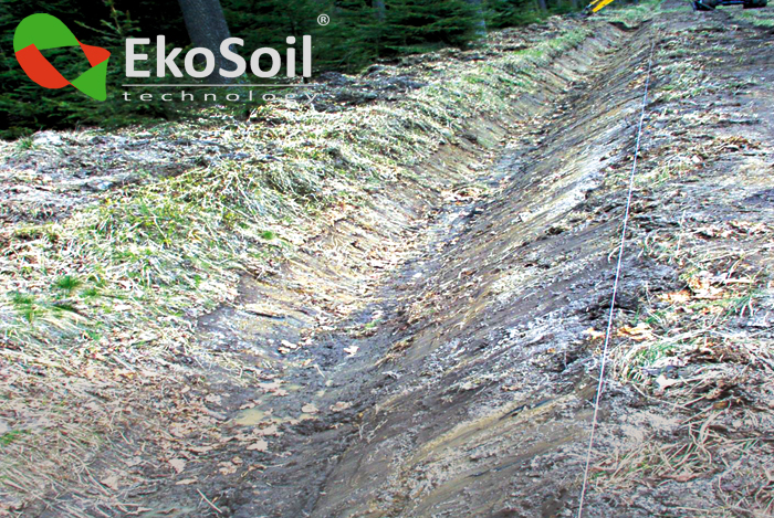 ECO Roads System, in a short period of construction works, enables utilizing 100% of the subsoil, there is no need to use such additional materials as aggregate or to take away excavating material. It enables reducing the costs connected with road engineering.