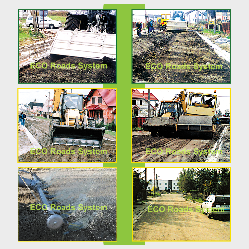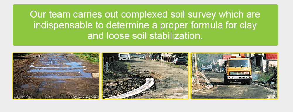 Trwała stabilizacja gruntów gliniastych i wątpliwych metodą chemiczno-hydrauliczną w technologii STABI Road System. Utwardzanie gruntów i recykling zniszczonych zawierzchni bitumicznych.